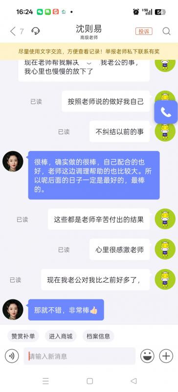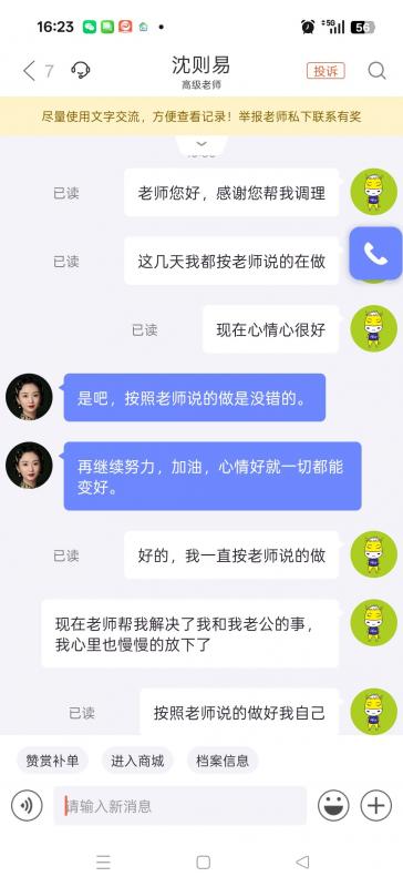 2023年在老师的帮助下,孩子状态很差,成绩一落千丈,非常感谢老师当时不遗余力的帮助和教导,孩子在不到两年时间恢复正常学业最终被海南大学录取,真的非常感恩老师,去年未来得及跟老师分享喜悦,最近看到老师又回来平台了特来向老师分享喜悦。望孩子未来都能够在老师的指点下一生顺遂。